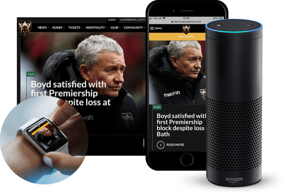 The XMS utilizes an integrated match centre to distribute live and up to the minute content to web, social channels, push notifications and more. The Match Centre is integrated with stats providers to automatically and dynamically deliver exciting content to phones, wearables, website, and voice devices.